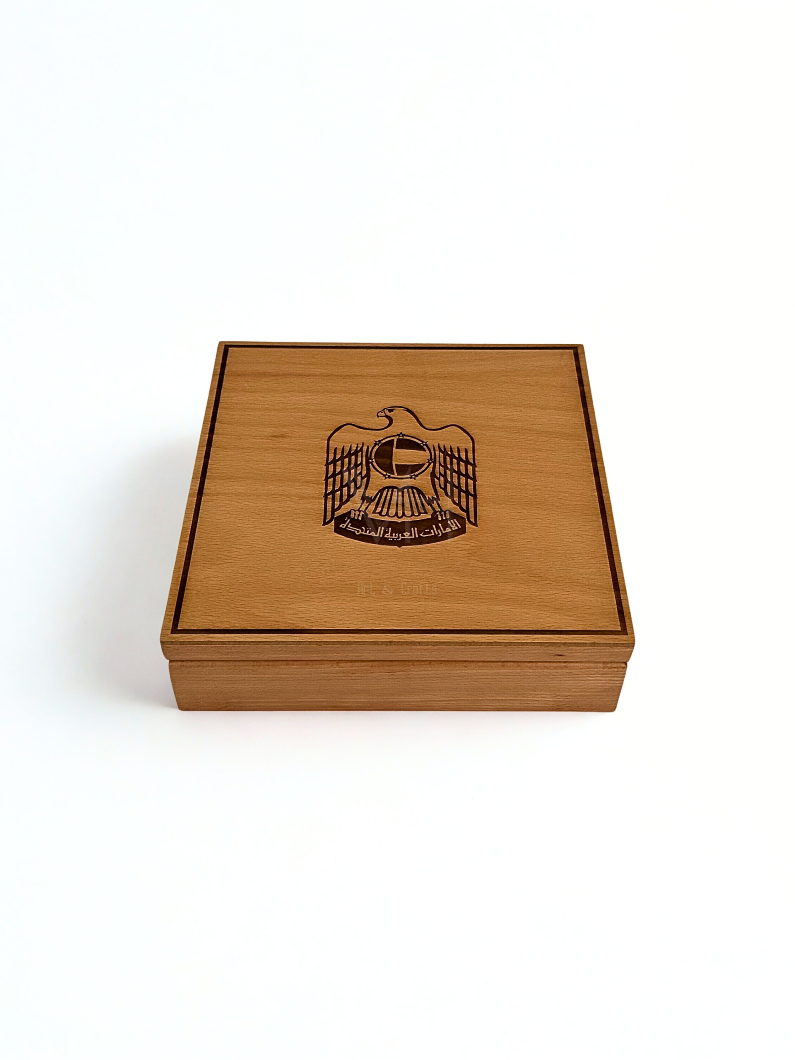 UAE emblem Handmade Solid beech wood box (Large Size)